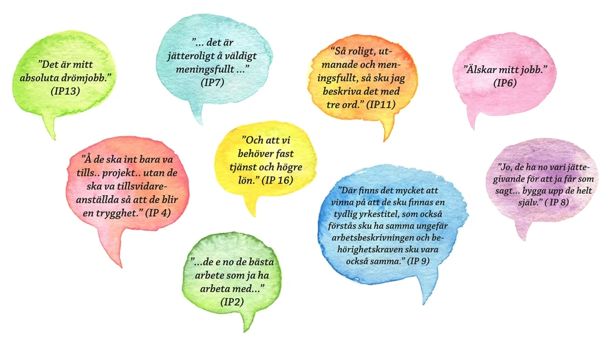 De intervjuade skolcoacherna upplever sitt arbete som fritt, meningsfullt och givande. Inför framtiden önskar de intervjuade skolcoacherna fortlöpande arbetsavtal, tydligare arbetsbeskrivningar och lön som motsvarar kravnivån. Eftersom arbetet kan vara belastande, upplever flera av skolcoacherna att de skulle gagnas av arbetshandledning.